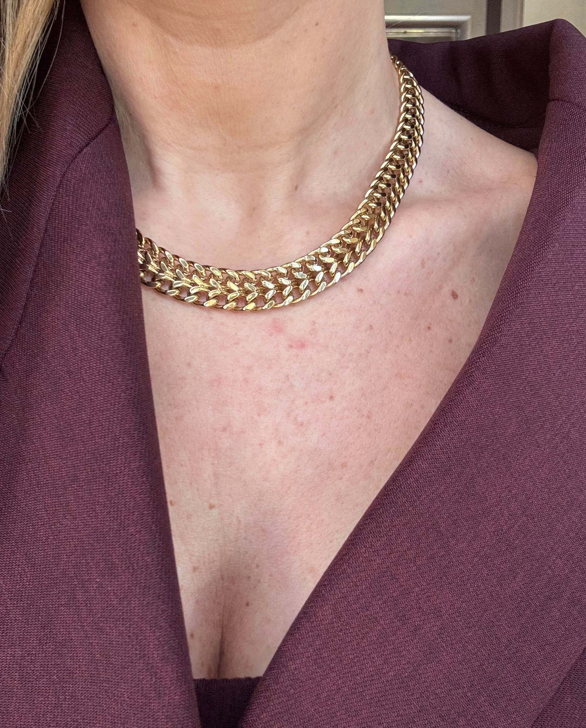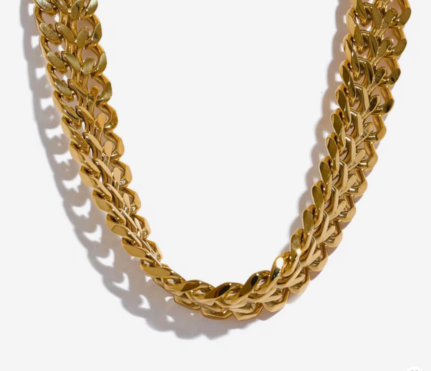 Collana a catena intrecciata dal design deciso ed elegante. Un modello versatile, perfetto da indossare da solo o in layering.