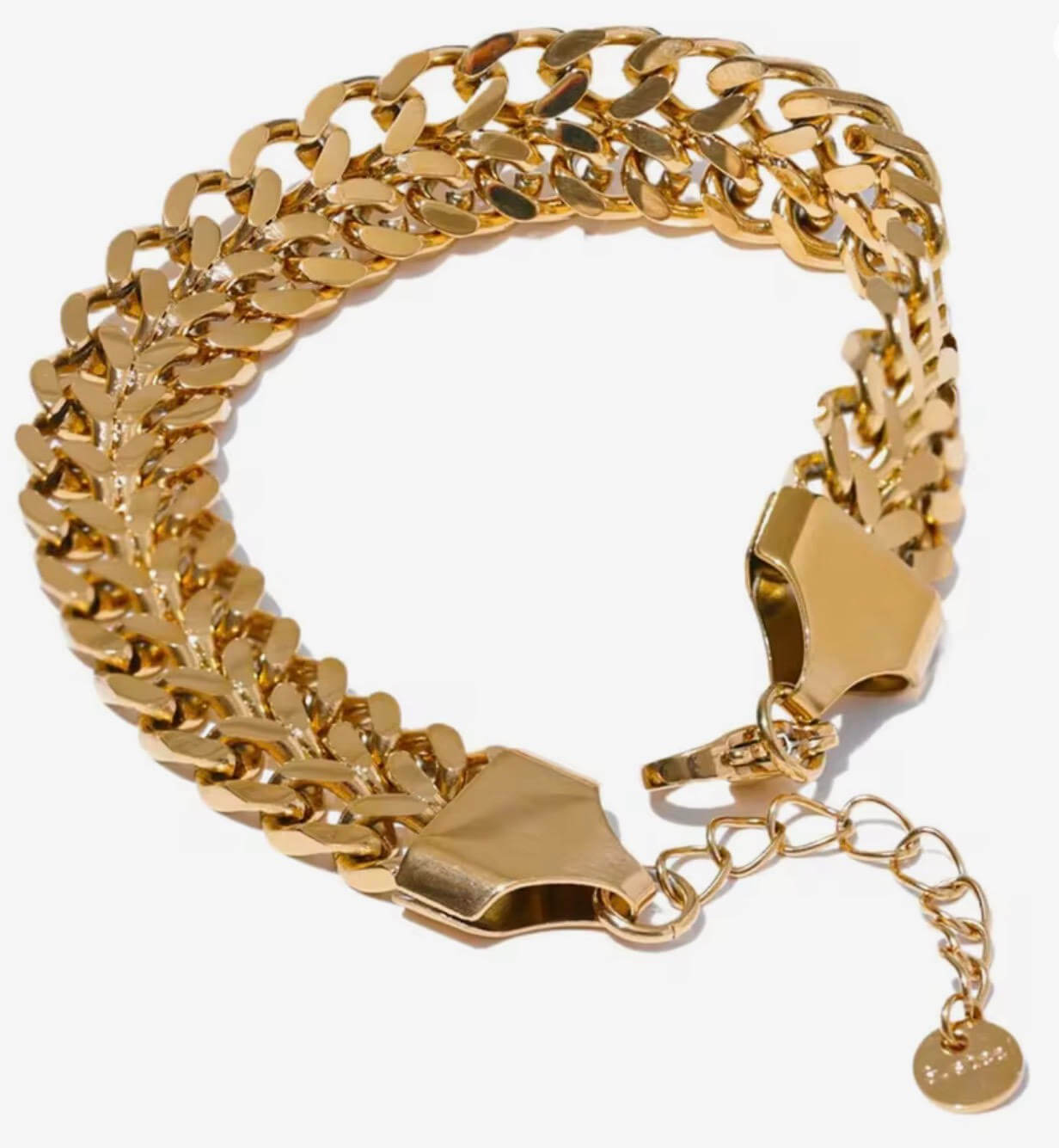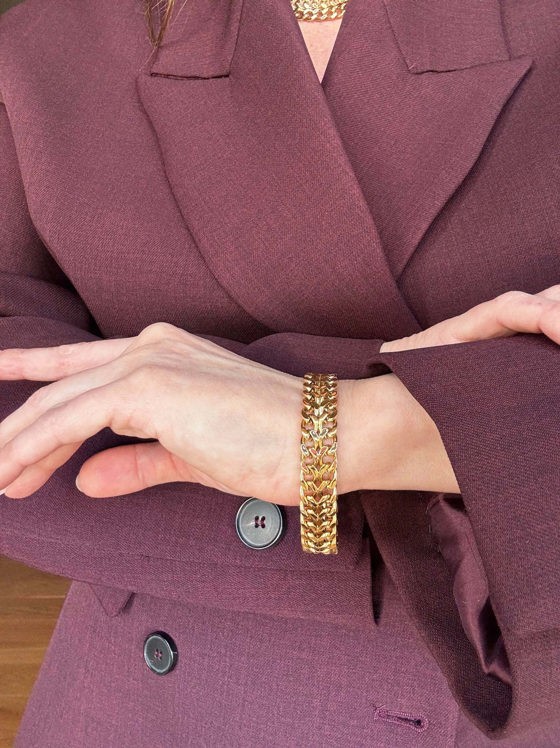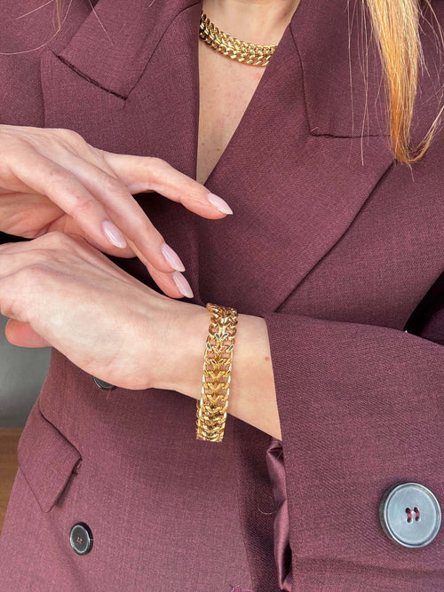 Bracciale a catena intrecciata dal design deciso ed elegante. Un accessorio versatile, perfetto da indossare da solo o abbinato alla collana coordinata.