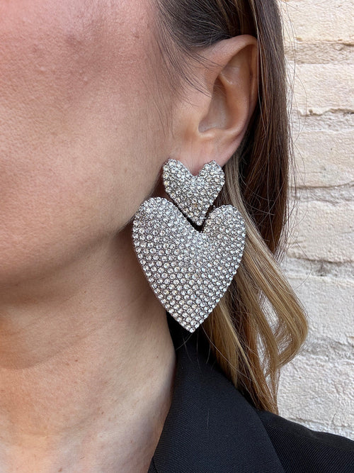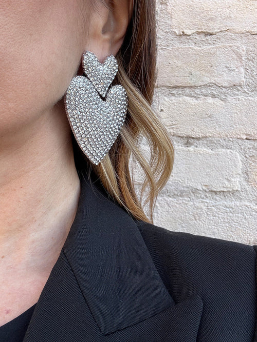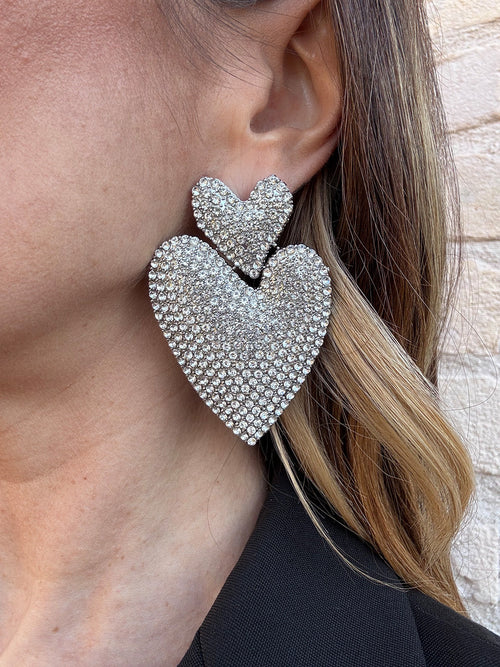 Orecchini a forma di cuore ricoperti di zirconi luminosi. Realizzati in acciaio inossidabile, eleganti e d’impatto, perfetti per valorizzare il viso con un tocco brillante.