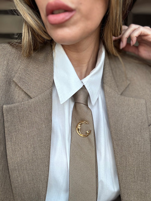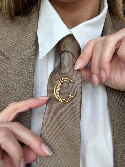 Una luna con stella che illumina il look con un tocco simbolico e senza tempo.